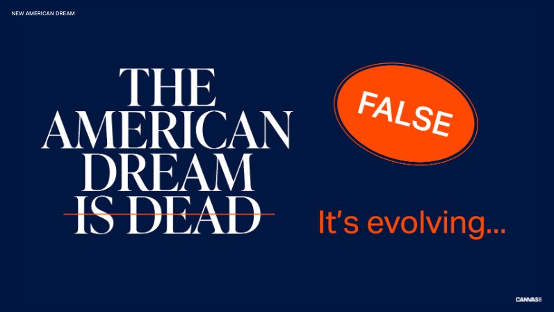 A vision of America as a land of freedom, equality and opportunity for all is at the heart of the American cultural narrative, but worsening rates of social mobility, clear systemic inequalities, and failing trust in public institutions have cast a dark shadow over these core national ideals. This doesn’t mean that the American Dream is dead. Some 70% of Americans still believe that the American Dream is personally achievable - highlighting how people remain faithful to its vision of prosperity and success. So what's changing? Canvas8's New American Dream report examines tomorrow's vision of aspiration, explores what division in the US means for your brand, and evaluates the definition of American identity today.